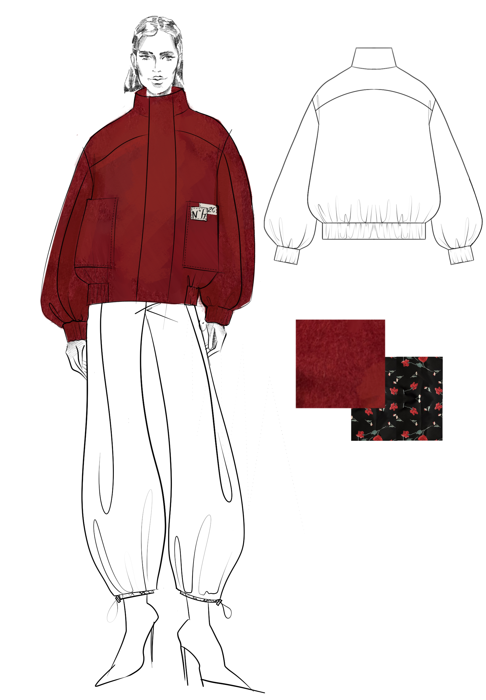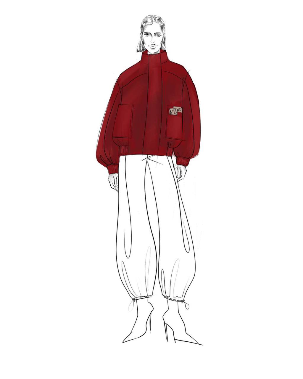 Шерстяной бомбер RED с контрастной подкладкой