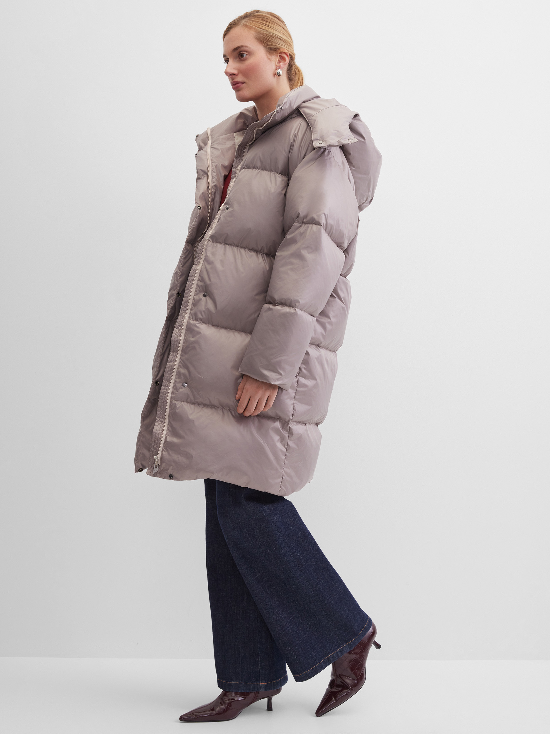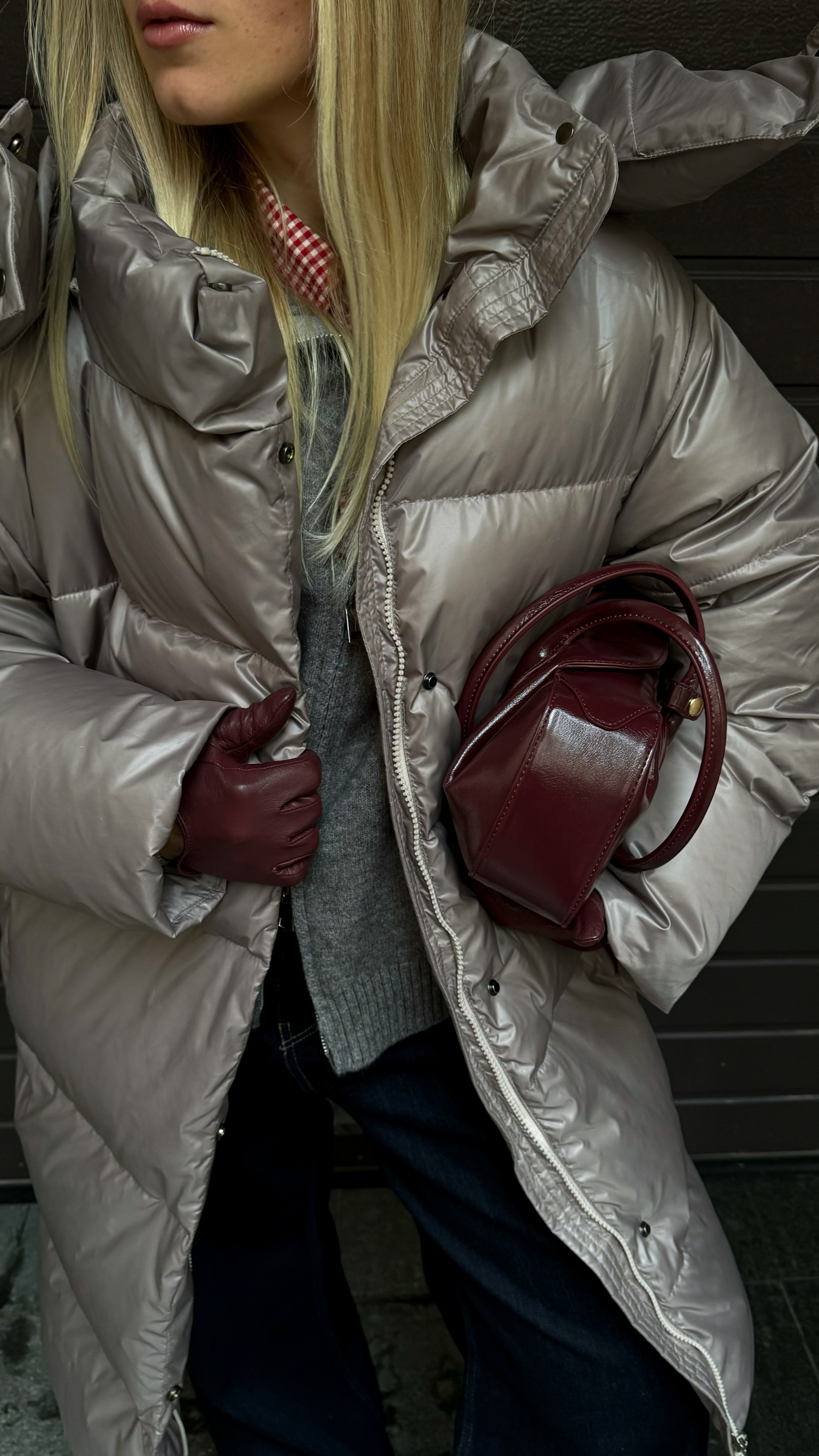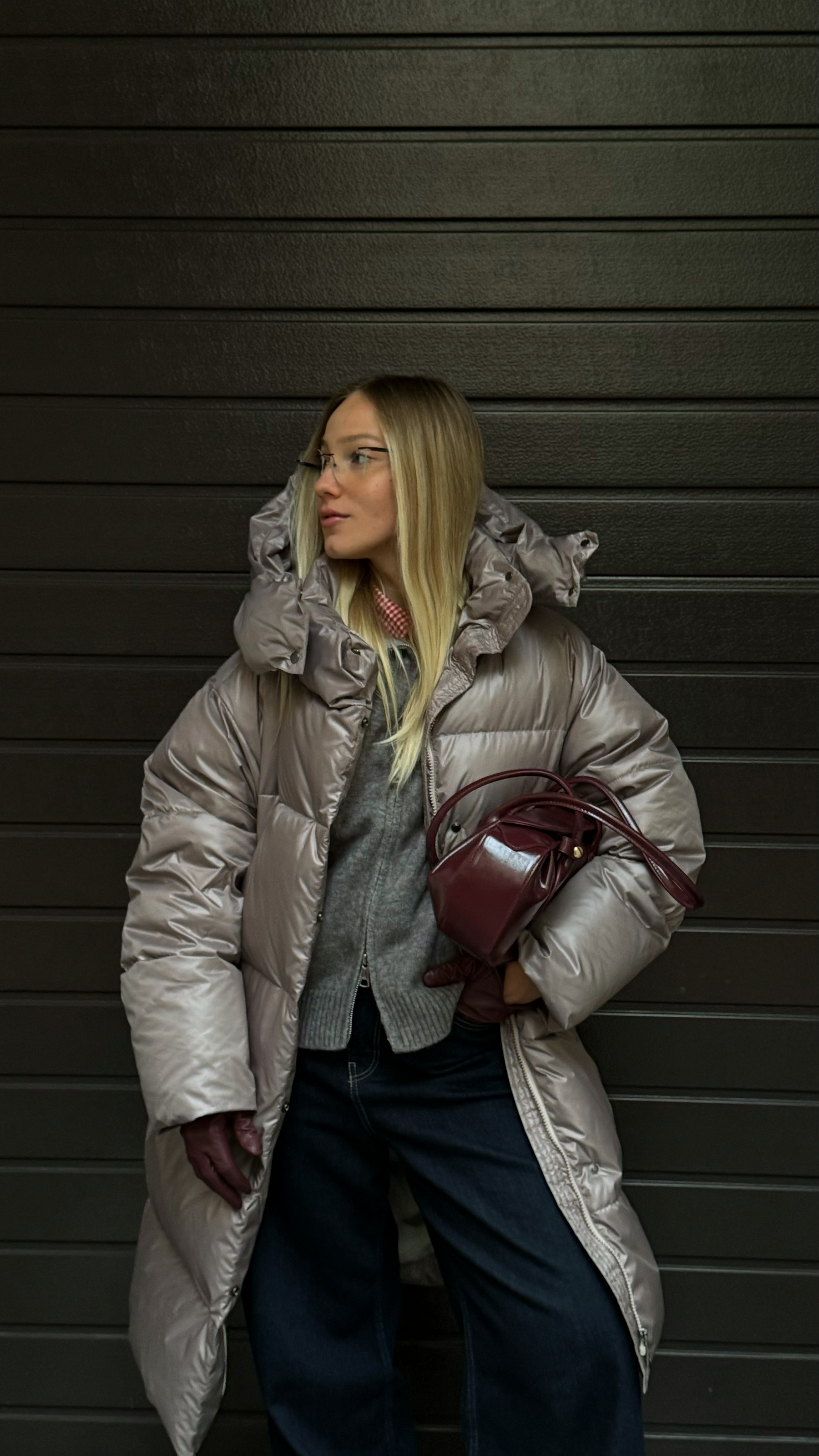 MIDI пуховик с объемным капюшоном, Beige Pink🐨🐨🐨