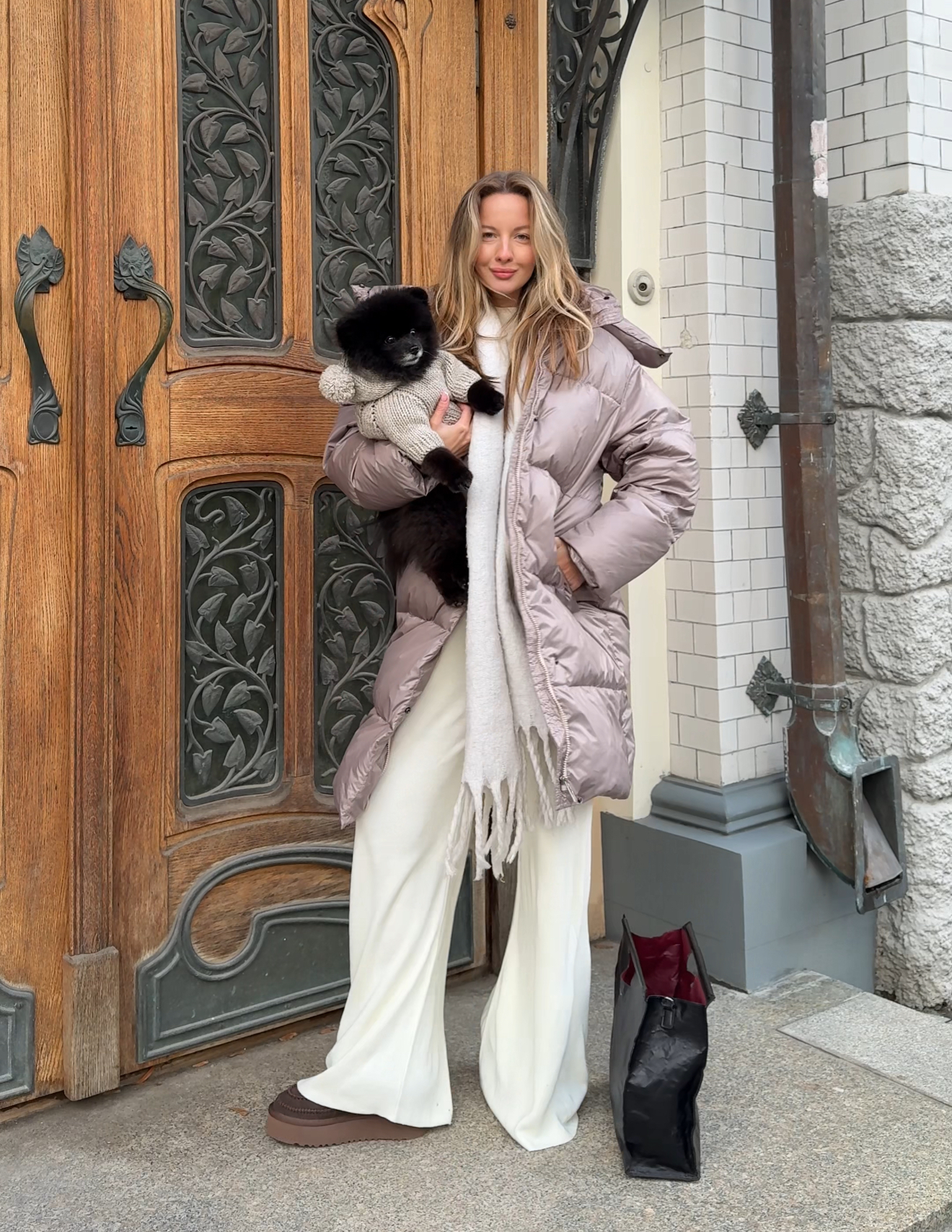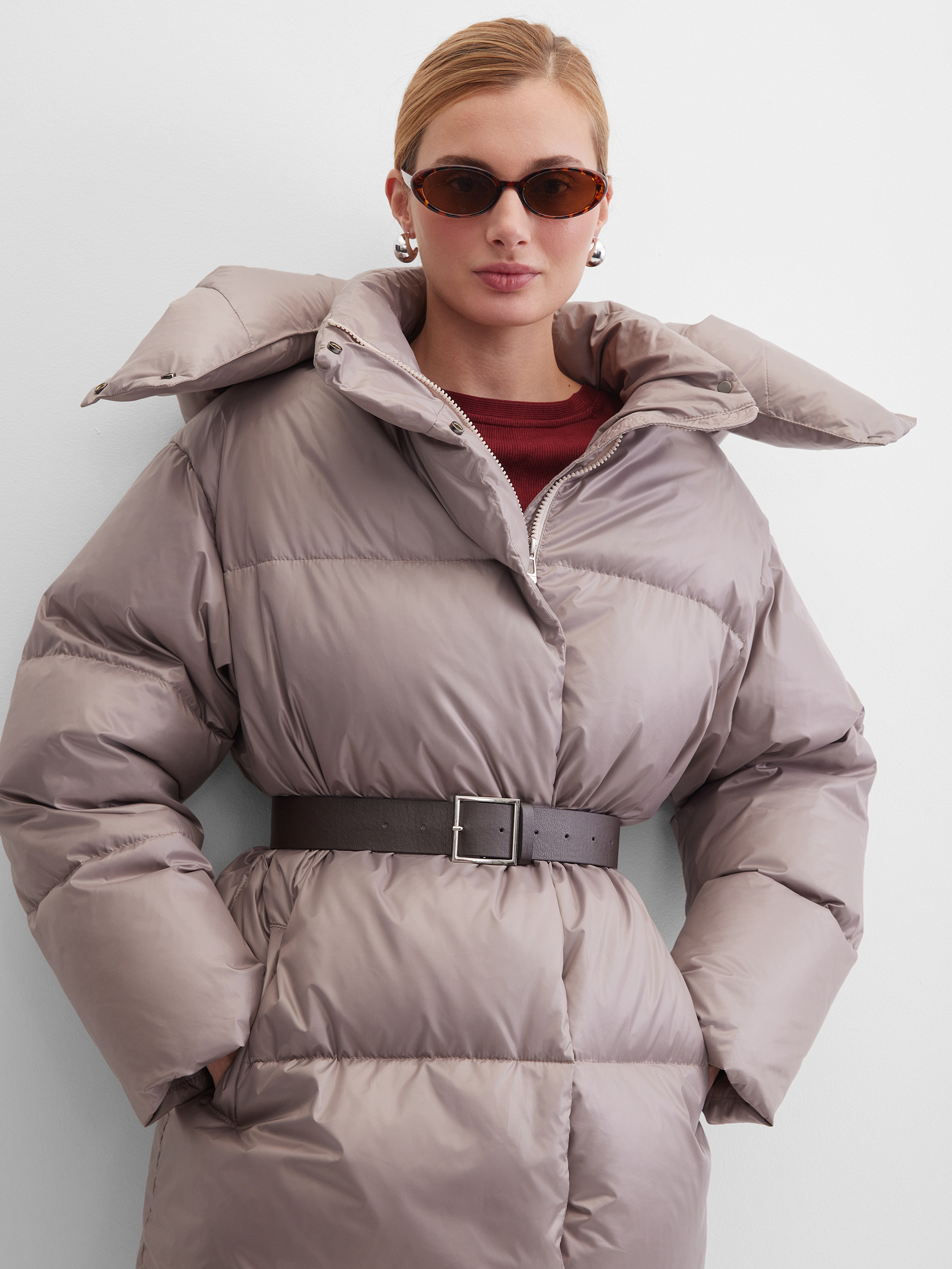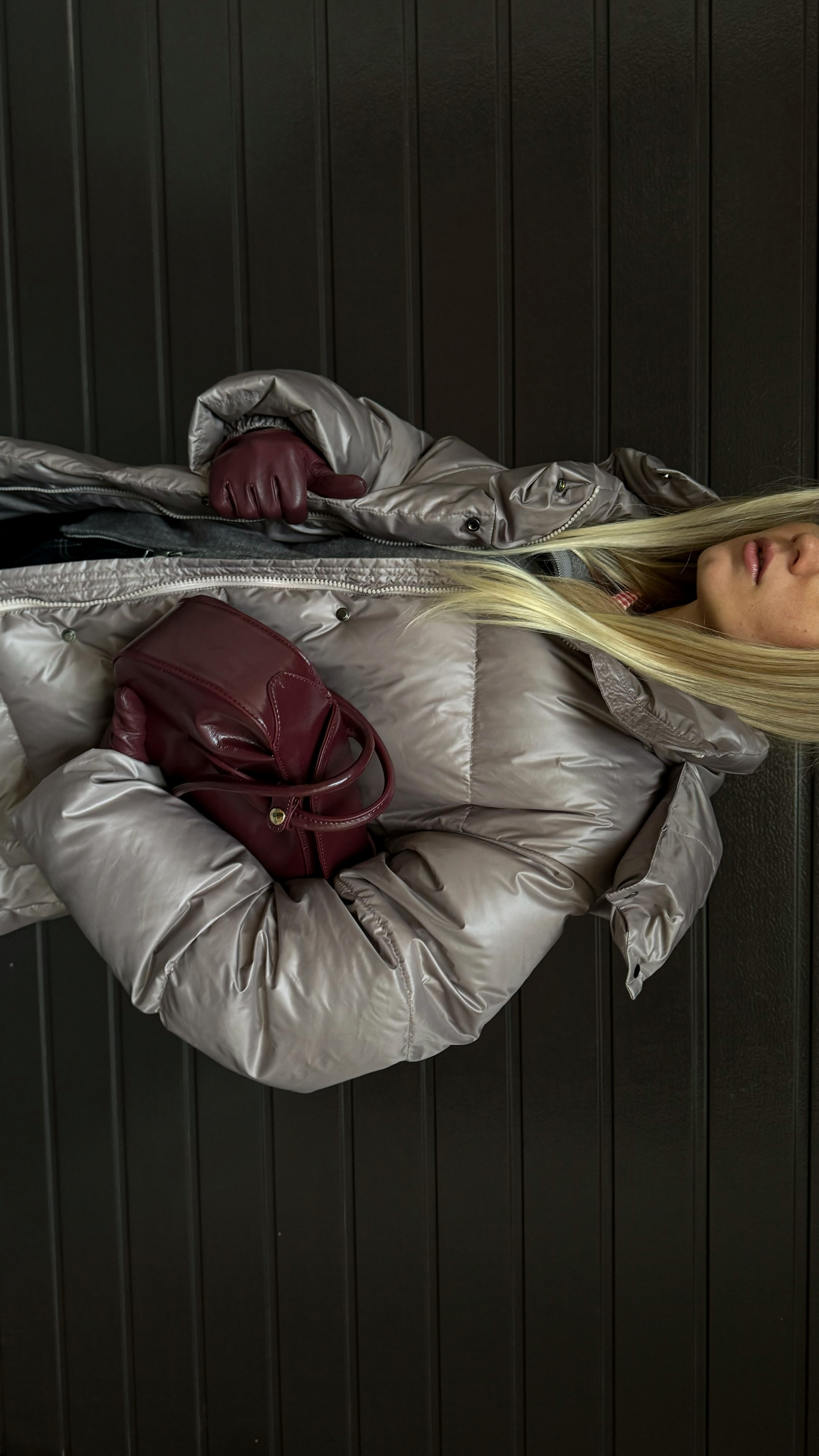 MIDI пуховик с объемным капюшоном, Beige Pink🐨🐨🐨