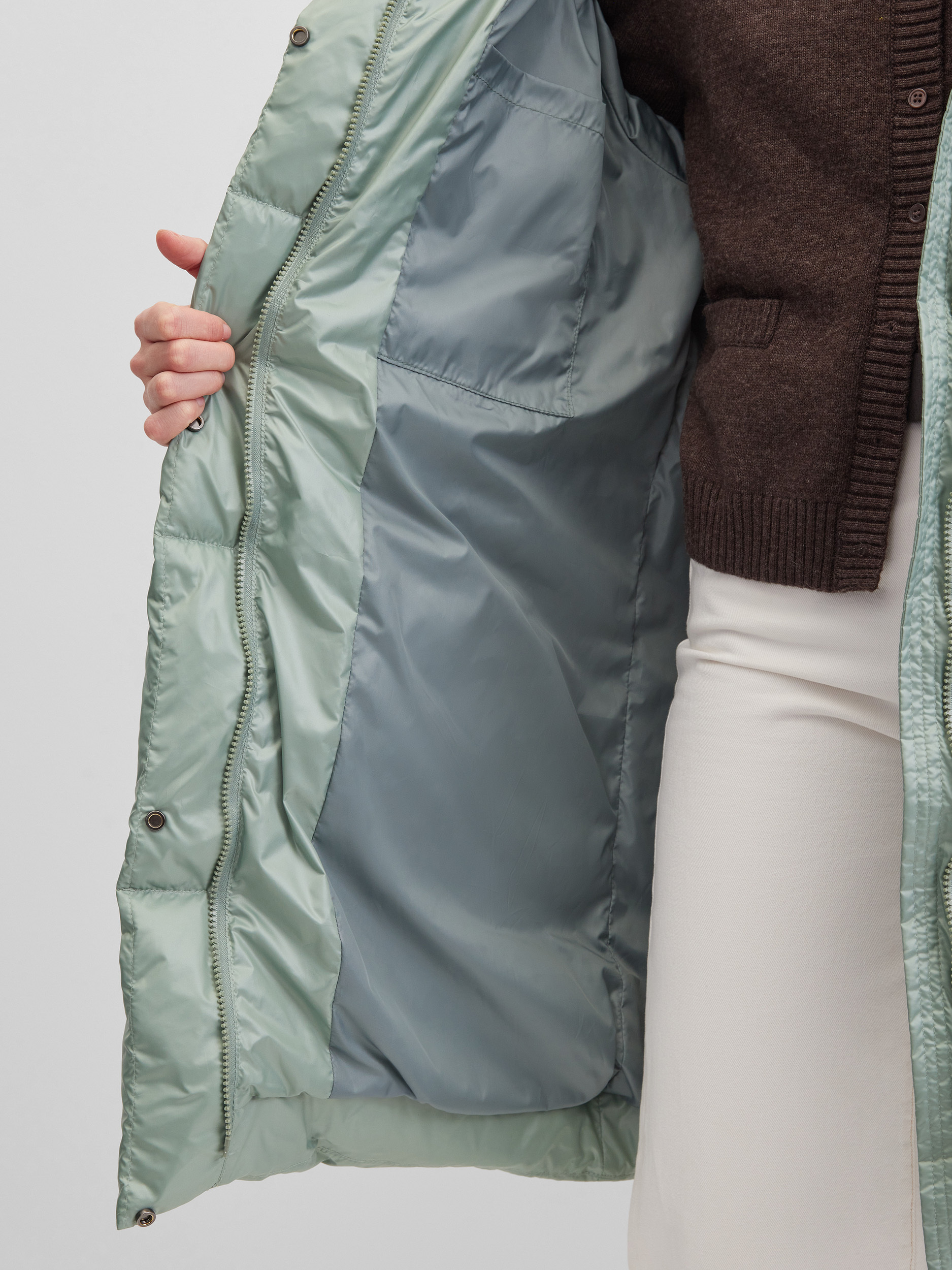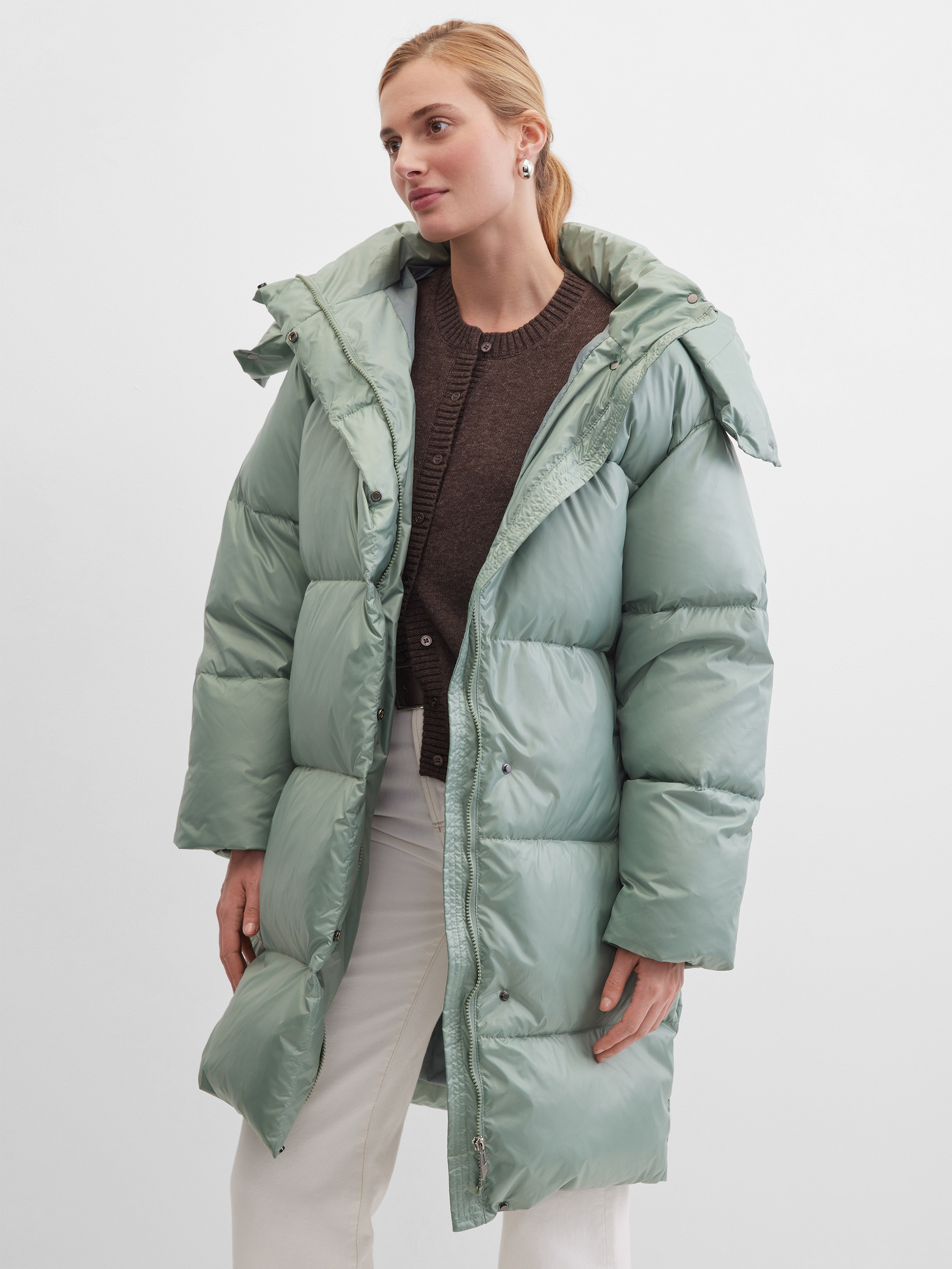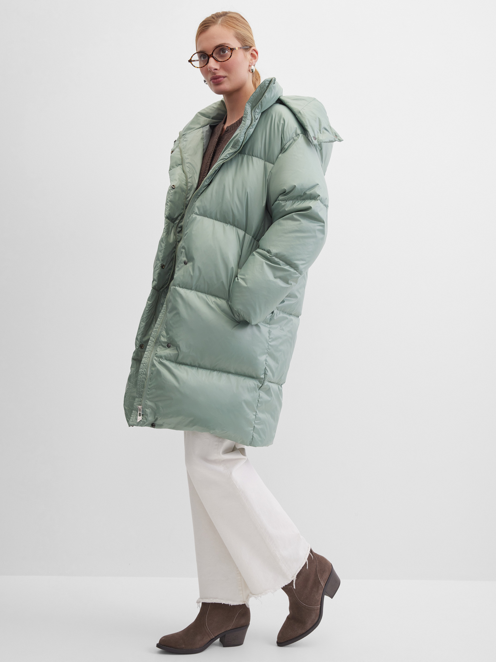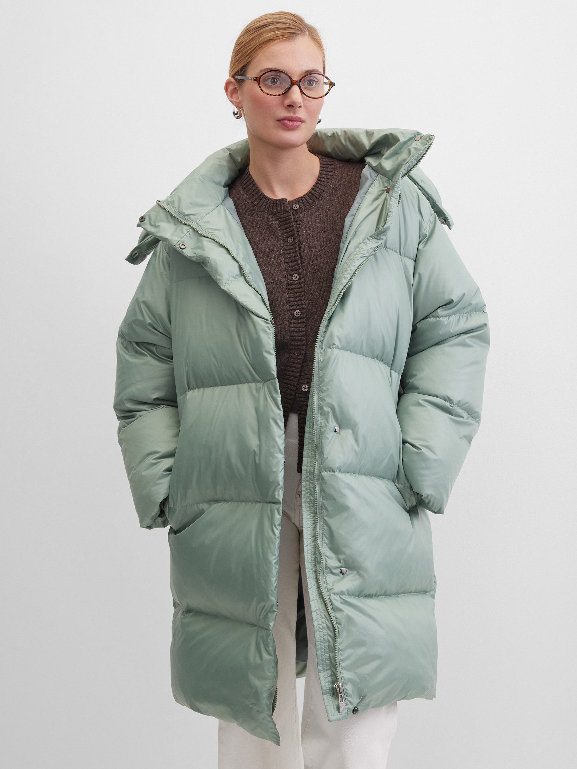 Пуховик средней длины - это отличное сочетание функциональности и уюта в любое время года, особенно при температуре до –30°C. Натуральный пух обеспечивает надежное тепло и комфорт, а практичные детали делают носку удобной: молния, которая открывается и снизу, позволит легко устроиться в машине или транспорте, не снимая куртку. Съёмный объемный капюшон защитит от ветра, а манжеты на рукавах и длина пуховика (по спинке 100 см) подарят дополнительную защиту от холода и идеально подстроят силуэт по фигуре.