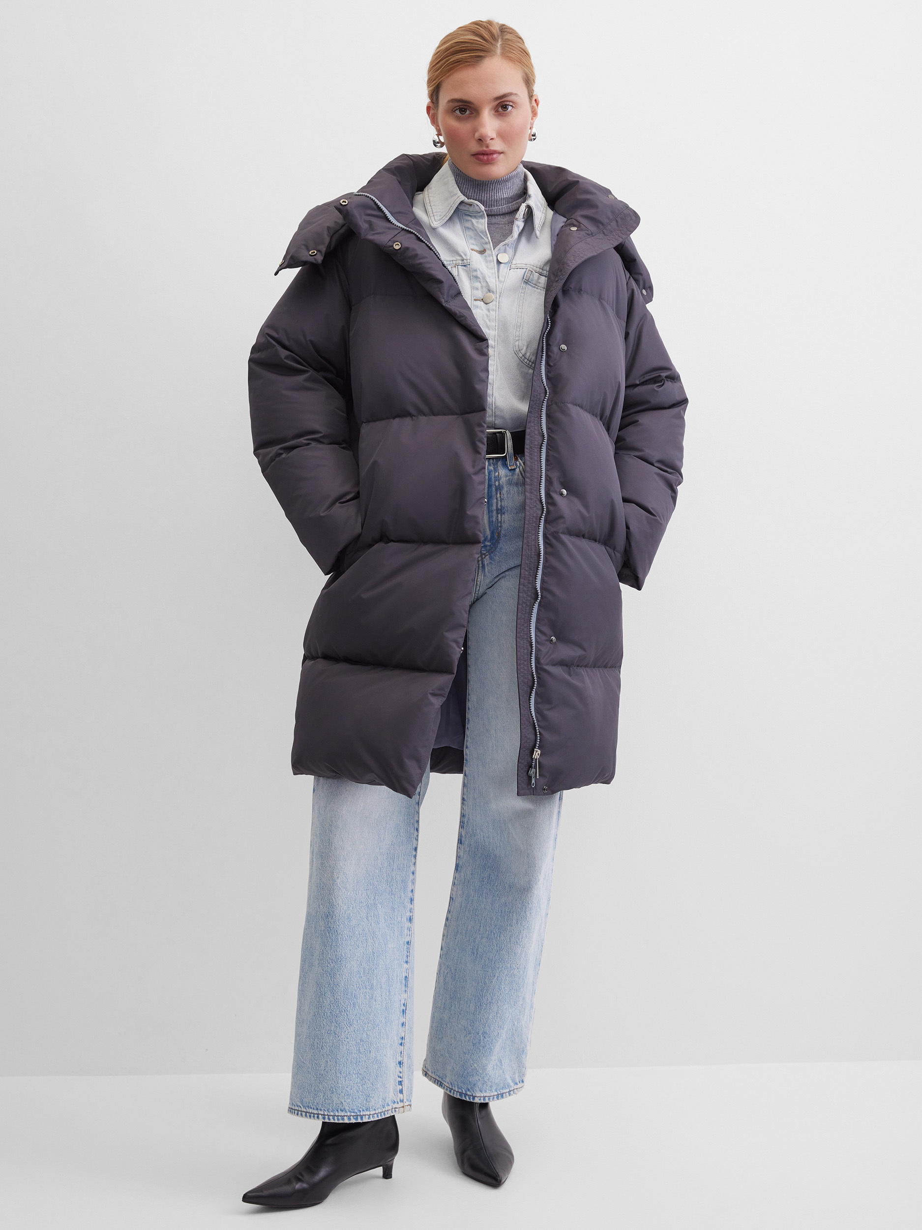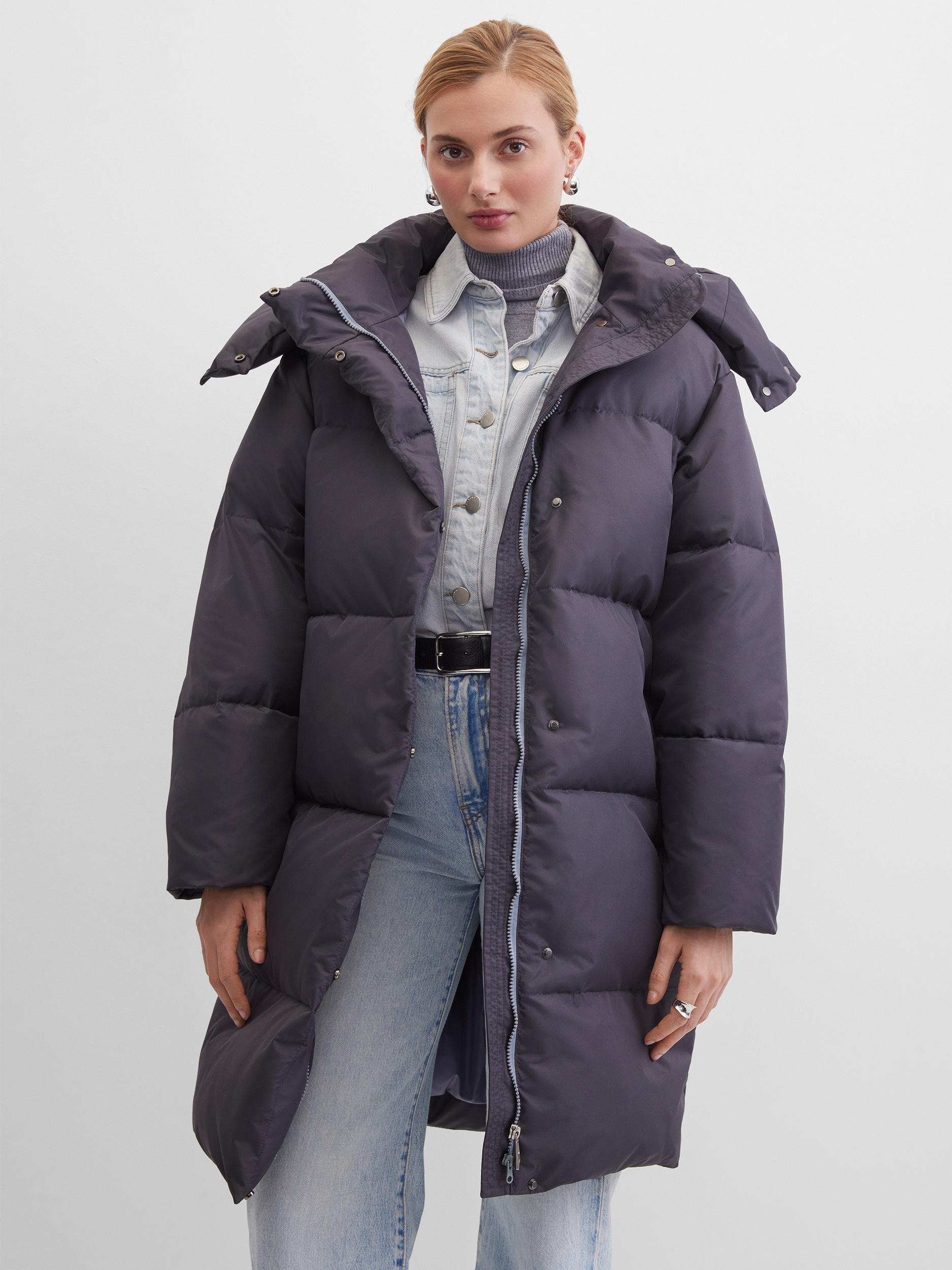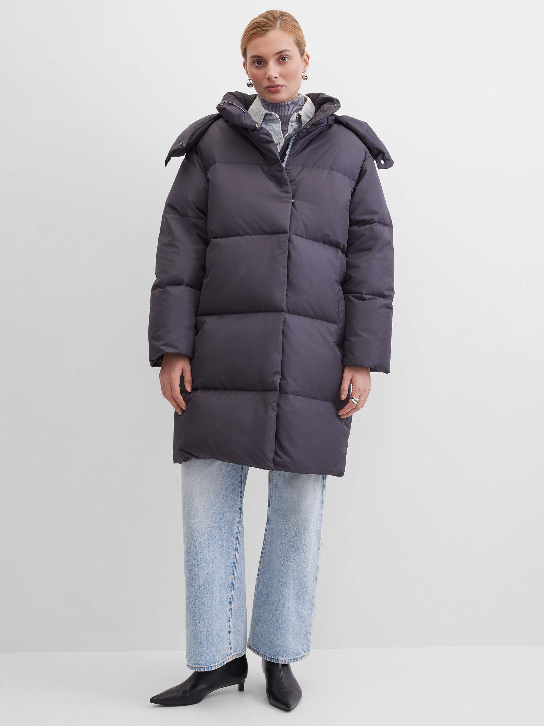 Пуховик средней длины - это отличное сочетание функциональности и уюта в любое время года, особенно при температуре до –30°C. Натуральный пух обеспечивает надежное тепло и комфорт, а практичные детали делают носку удобной: молния, которая открывается и снизу, позволит легко устроиться в машине или транспорте, не снимая куртку. Съёмный объемный капюшон защитит от ветра, а манжеты на рукавах и длина пуховика (по спинке 100 см) подарят дополнительную защиту от холода и идеально подстроят силуэт по фигуре.