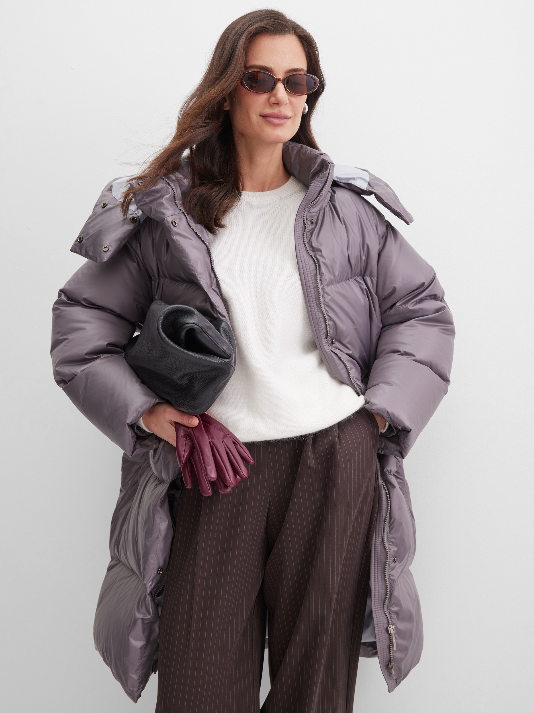 Пуховик средней длины - это отличное сочетание функциональности и уюта в любое время года, особенно при температуре до –30°C. Натуральный пух обеспечивает надежное тепло и комфорт, а практичные детали делают носку удобной: молния, которая открывается и снизу, позволит легко устроиться в машине или транспорте, не снимая куртку. Съёмный объемный капюшон защитит от ветра, а манжеты на рукавах и длина пуховика (по спинке 100 см) подарят дополнительную защиту от холода и идеально подстроят силуэт по фигуре.